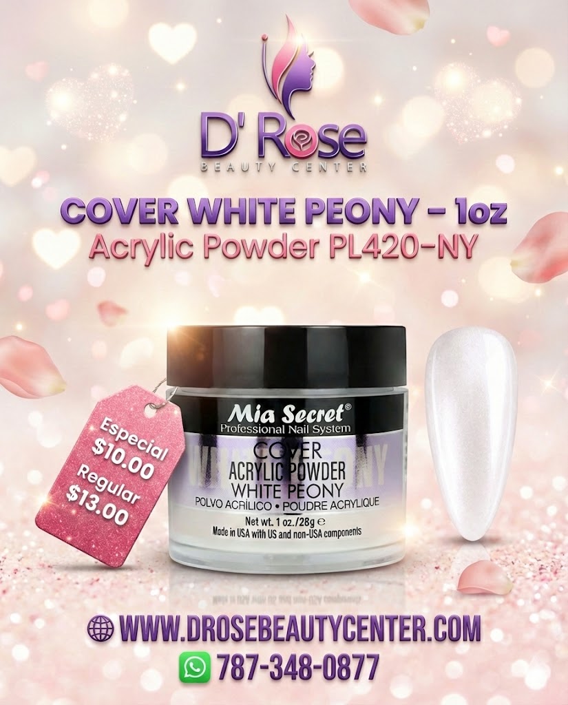 💖✨ Mia Secret® Cover White Peony – Acrílico Cover Profesional 1 oz (PL420-NY) ✨💖