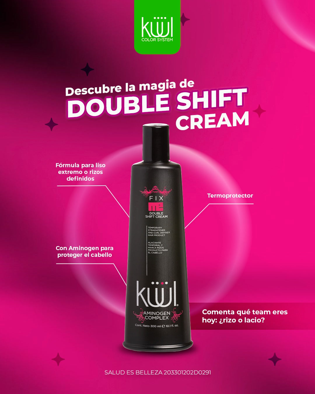 Transforma tu cabello con una sola crema. KUUL Fix Me Double Shift Cream es una crema profesional 2 en 1 que funciona como alisante temporal y definidor de rizos, ideal para quienes desean versatilidad, protección térmica y un acabado de salón todos los días.
