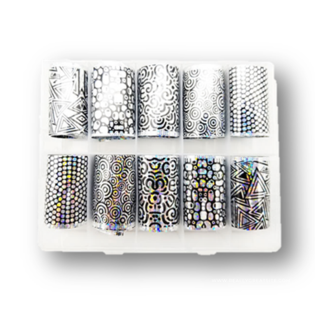 Paquete de 10 unidades de papel foil para decoraciones de uñas.
