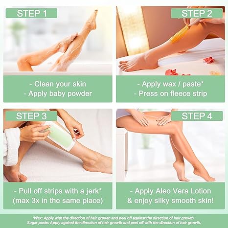 Eliminación del pelo: las tiras de vellón son particularmente suaves con la piel durante la depilación. La irritación de la piel y la picazón se evitan debido al material de alta calidad de las tiras para la depilación.