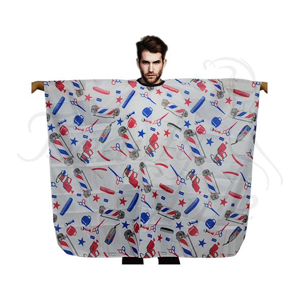 Capa de corte de barbero, con estampado. Los estampados varían según estilos, Ideal para corte de pelo usado comúnmente como capa de delantal. Medidas 140-160cm.