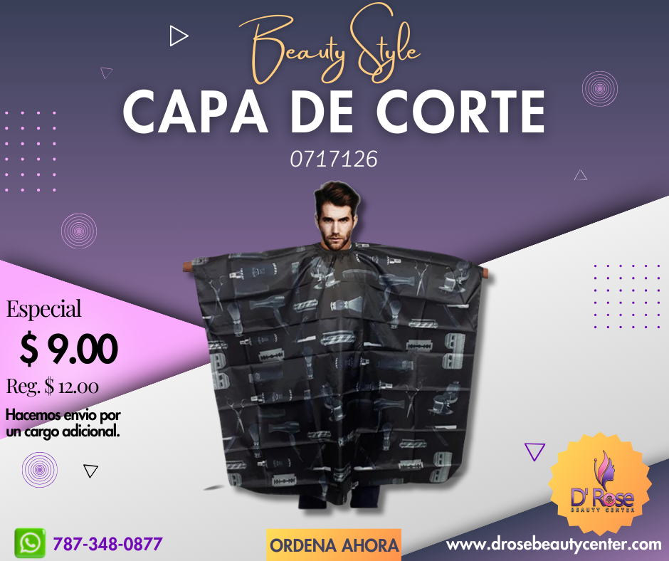 Capa de corte de barbero, con estampado. Los estampados varían según estilos, Ideal para corte de pelo usado comúnmente como capa de delantal. Medidas 140-160cm.