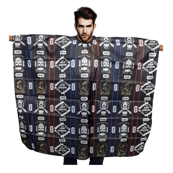 Capa de corte de barbero, con estampado. Los estampados varían según estilos, Ideal para corte de pelo usado comúnmente como capa de delantal. Medidas 140-160cm.