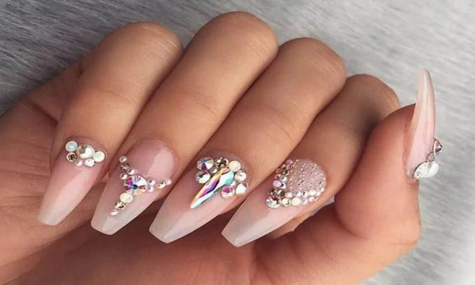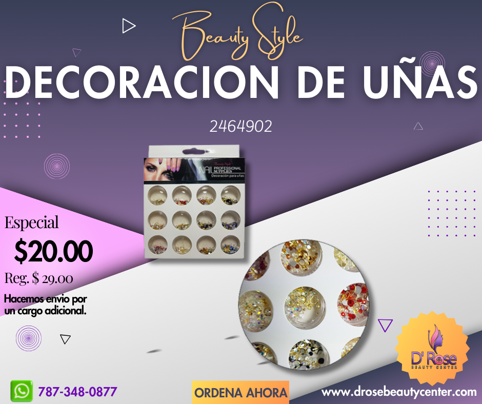 Variedad de diseños, piedras, glitter o bisutería para uñas. EL paquete contiene 12 jaras surtidas de diferentes colores o estilo de diseños para uñas.