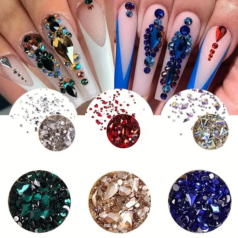 Paquete de 12 decoraciones, glitter o piedras para las uñas.