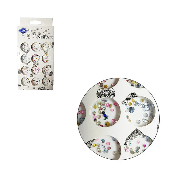 Paquete de 12 decoraciones, glitter o piedras para las uñas.
