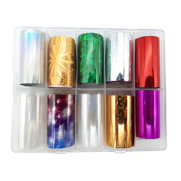 Paquete de 10 unidades de papel foil para decoraciones de uñas.