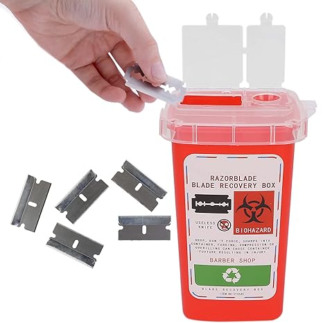 DISPOSICIÓN DE LA HOJA DE SCRAP: La caja de eliminación de cuchillas es la solución perfecta a su confusión sobre el descarte de cuchillas usadas, encuentra un hogar seguro para tus cuchillas de doble filo. Fácil de colocar y no se atasca fácilmente cuando está casi lleno.