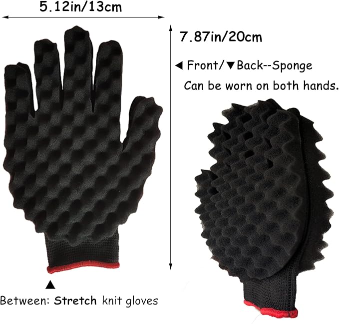 Guantes de diseño de doble cara: los guantes son más flexibles y se ajustan a tu palma. La parte delantera y trasera son ambas esponjas, que se pueden usar en ambas manos, y se pueden utilizar en ambos lados. En comparación con otras esponjas de cepillo de pelo ordinarias, el diseño de guante hará que sea más fácil para ti rizar el cabello sin problemas, por lo que completa un gran peinado.