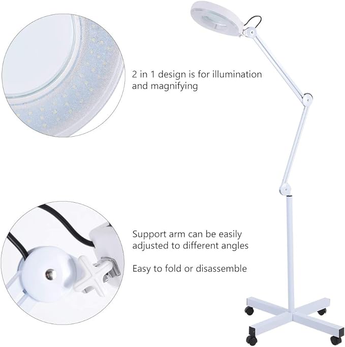 Ampliación 5X】: esta lámpara LED de pie con lente de 5 veces está diseñada para cualquier persona que se centra en el trabajo cercano, ver pequeños detalles más fácilmente