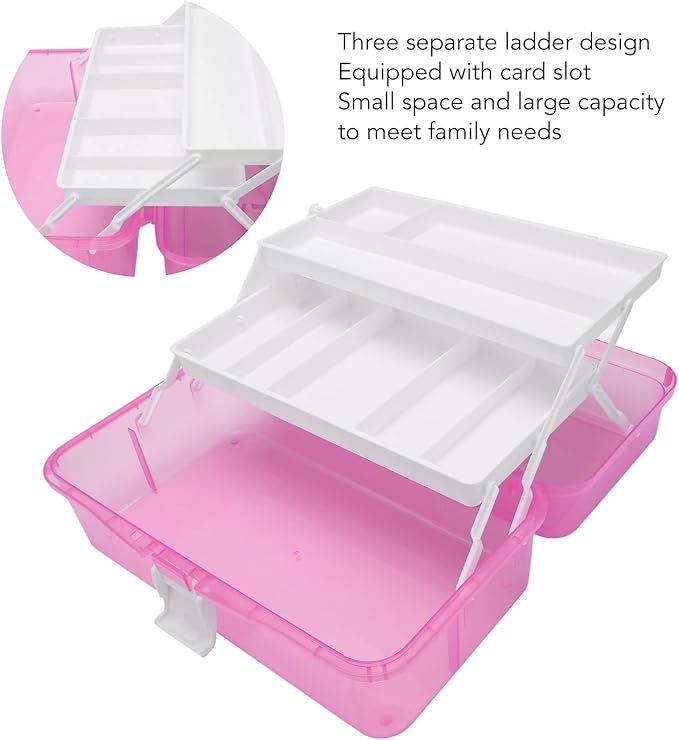 TRES ESCALERAS SEPARADAS: la caja de almacenamiento portátil de 3 capas está diseñada con tres escaleras separadas con ranuras para tarjetas. Pequeño espacio y gran capacidad para satisfacer las necesidades de la familia.