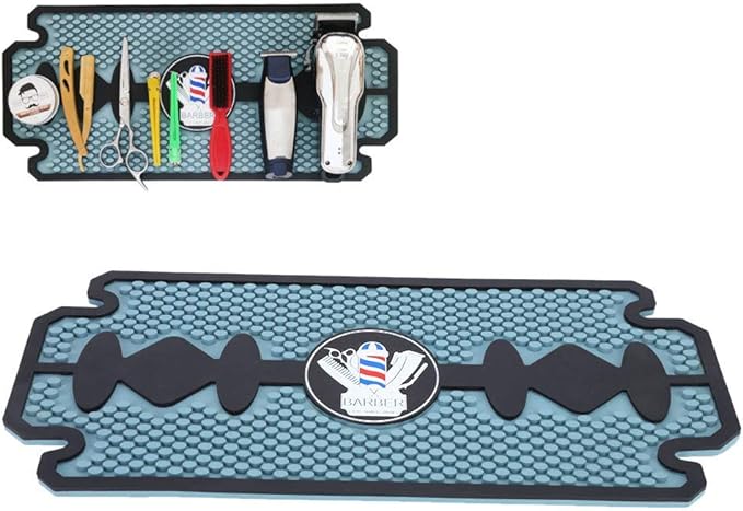 Mat que se coloca encima de la estación del barbero o en la gaveta. Este mat evita que las maquinas o tus equipo se resbalen pero también evita que las maquinas se guayen.