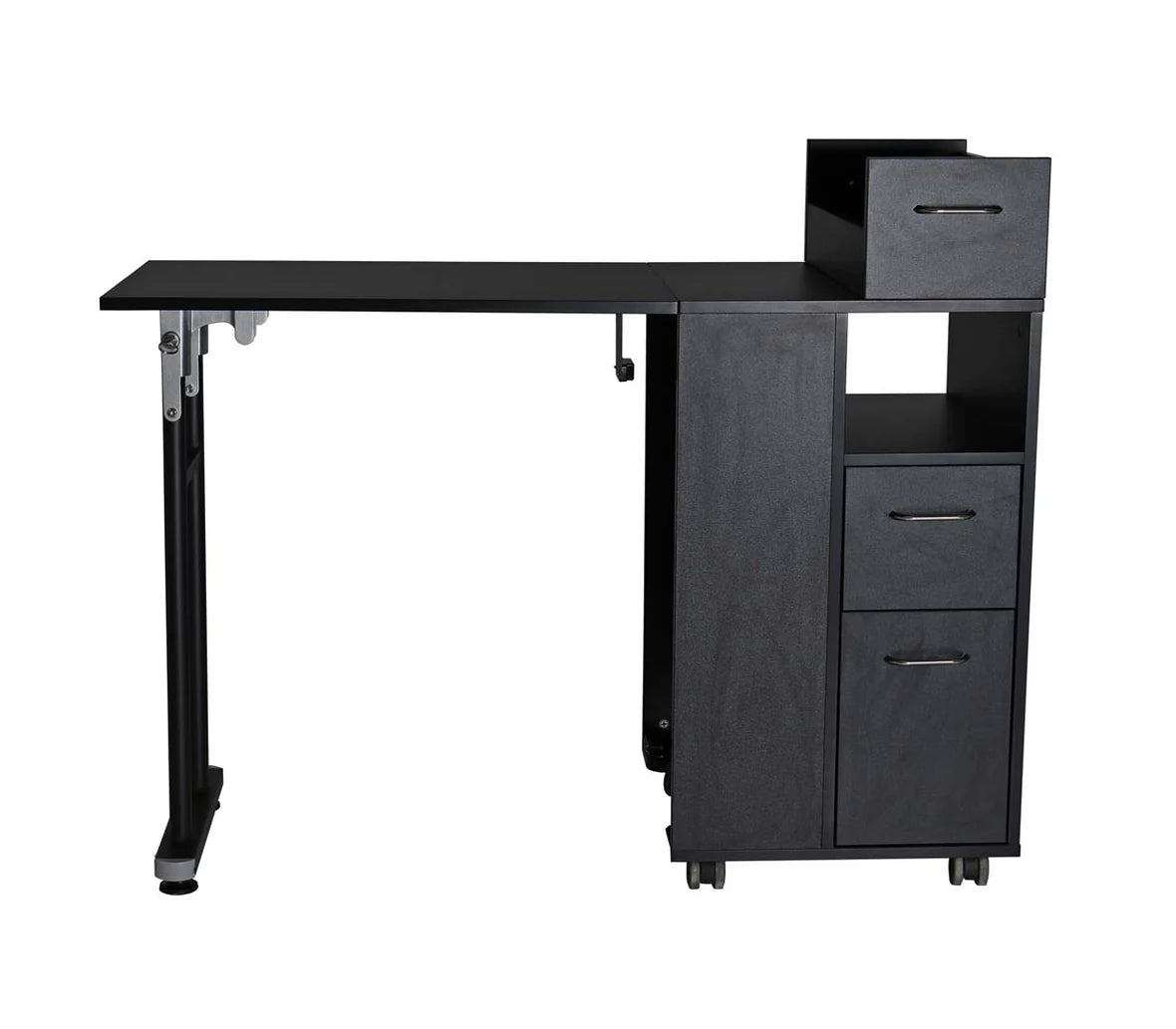 Mesa de manicura o técnica de uñas color negro. Consta con 3 gavetas. Es fácil de guardar.