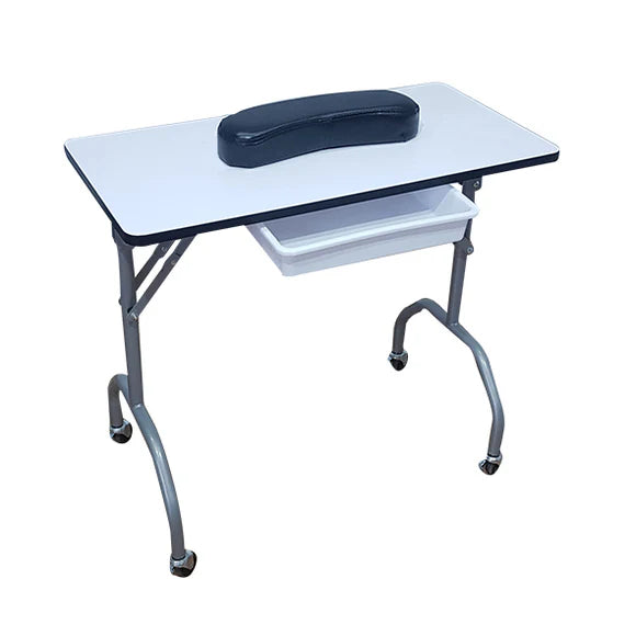 Mesa de uñas o de manicurista portátil. Es fácil de cargar y liviana, para esas chicas que trabajan a domicilio. Disponible en negro con blanco.