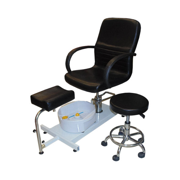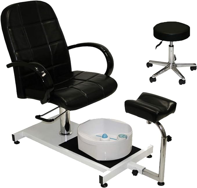 Mueble para técnica de uñas para hacer pedicura. Incluye el mueble del cliente con el descansa pies, Incluye tina de agua retractable. Y silla o banco para la técnica ce uñas.