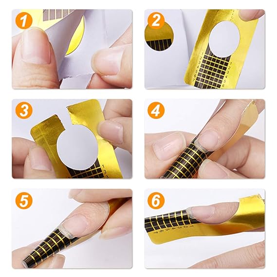 Uso fácilmente: Tire de la etiqueta redonda del medio a la parte posterior de las formas de extensión, deje que la escala de la pegatina en la parte delantera del borde de la uña y pellizque cada lado de las formas cuando la escala encaje con el dedo. Recuerda asegurarte de que las puntas se ajusten a tu dedo, cuando lo apliques con gel de polietileno y lo cures, puedes hacer la forma y la longitud que desees.