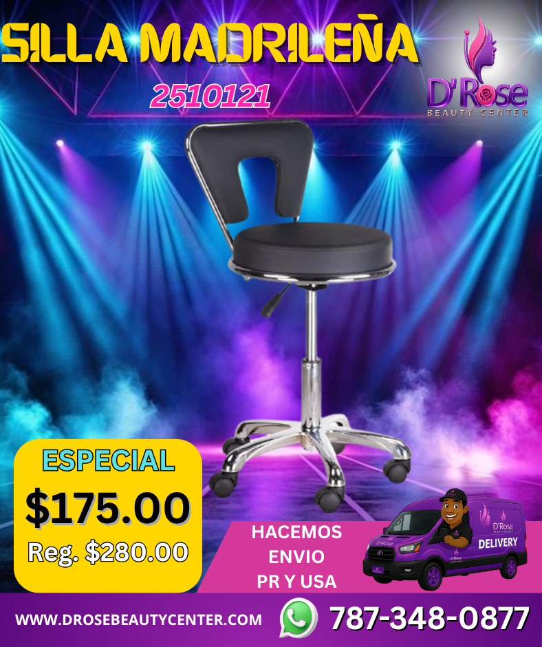 La Silla Madrileña Negra combina ergonomía, resistencia y estilo en un solo diseño. Perfecta para manicuristas, esteticistas, estilistas o incluso para uso de oficina, ofreciendo máxima comodidad y movilidad durante largas jornadas de trabajo.