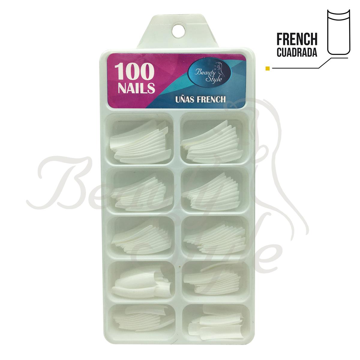 Paquete de 100 uñas postizas French corta color blanca para acrílico.