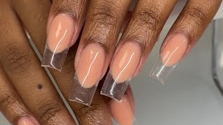 Paquete de 100 uñas postizas cuadrada mediano color trasparente para acrílico.