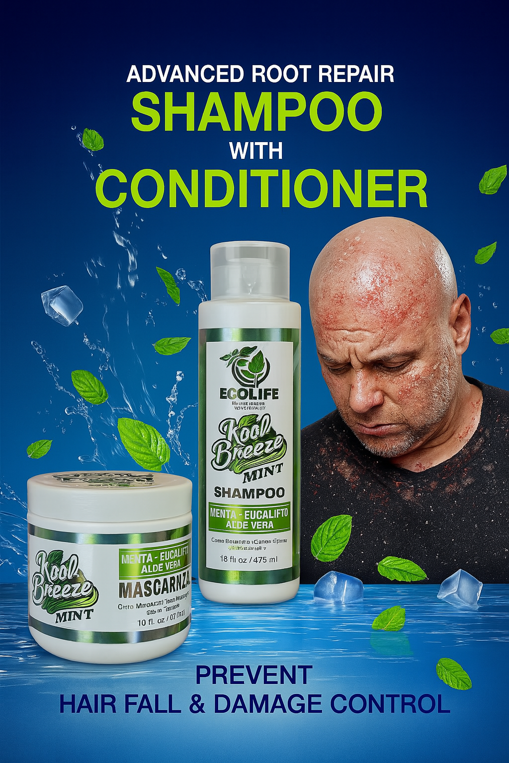 Una fórmula poderosa que hidrata, desenreda y reconstruye el cabello dañado desde la raíz. Su combinación refrescante de menta y eucalipto estimula el cuero cabelludo, mientras la sábila, el panthenol y el colágeno lo fortalecen, dejándolo suave, saludable y lleno de vida.