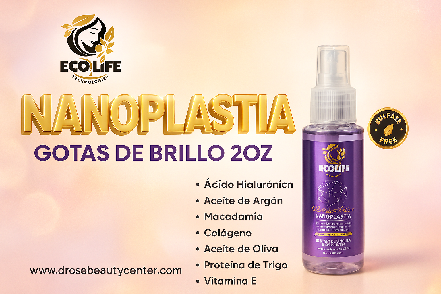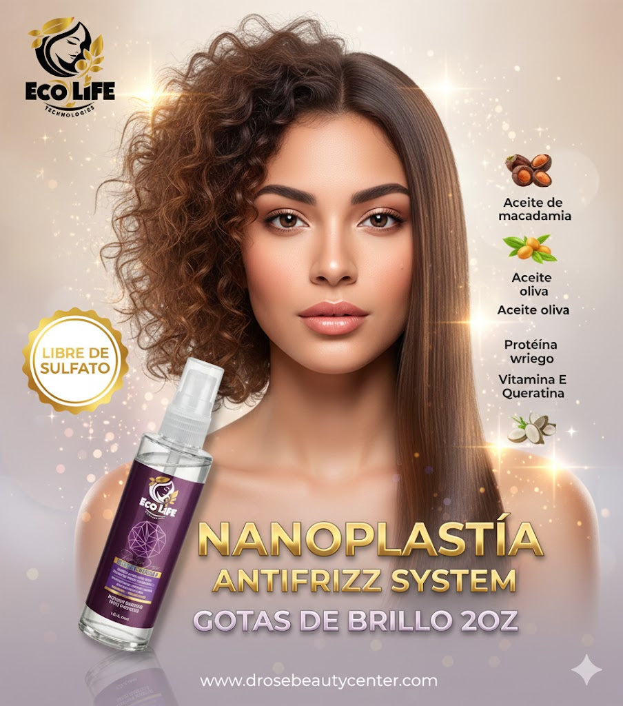 #GotasDeBrillo #NanoplastiaEcolife #CabelloBrillante #AntiFrizzHair #HairCarePR #DRoseBeautyCenter