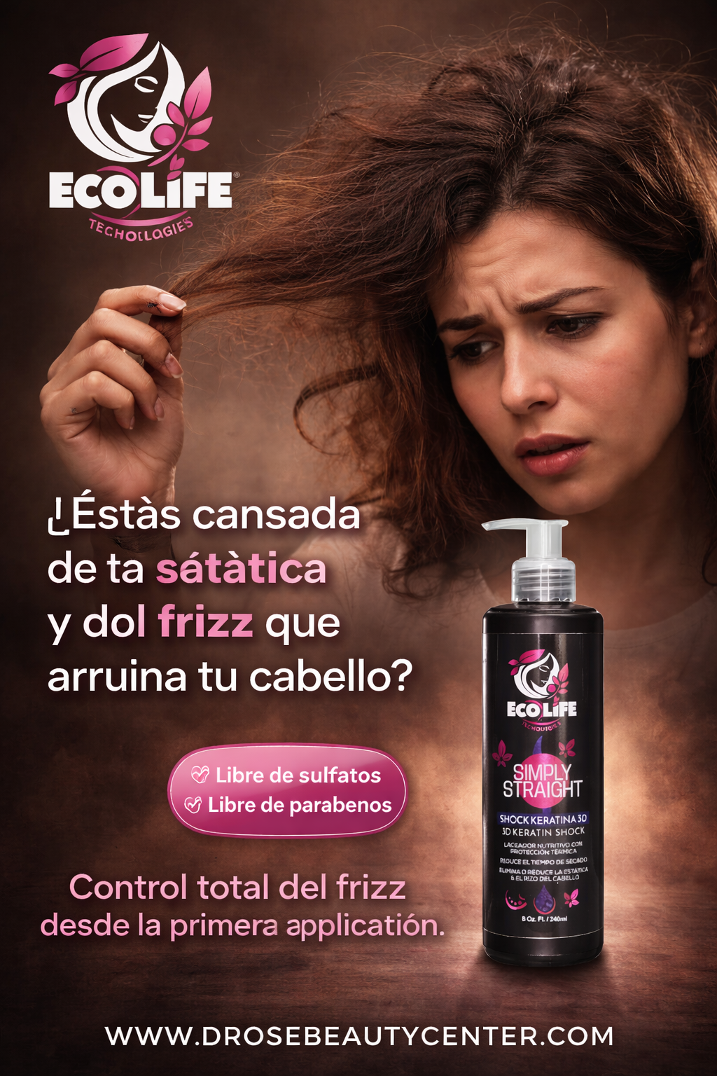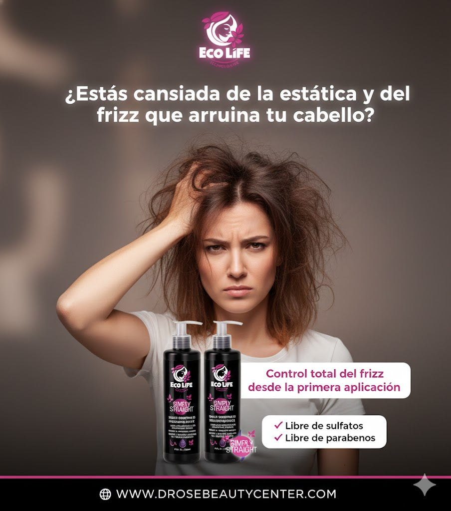 ECOLIFE TECHNOLOGIES Simply Straight Shock Keratina 3D Leave-In 8oz – Laciador Térmico & Control del Frizz
