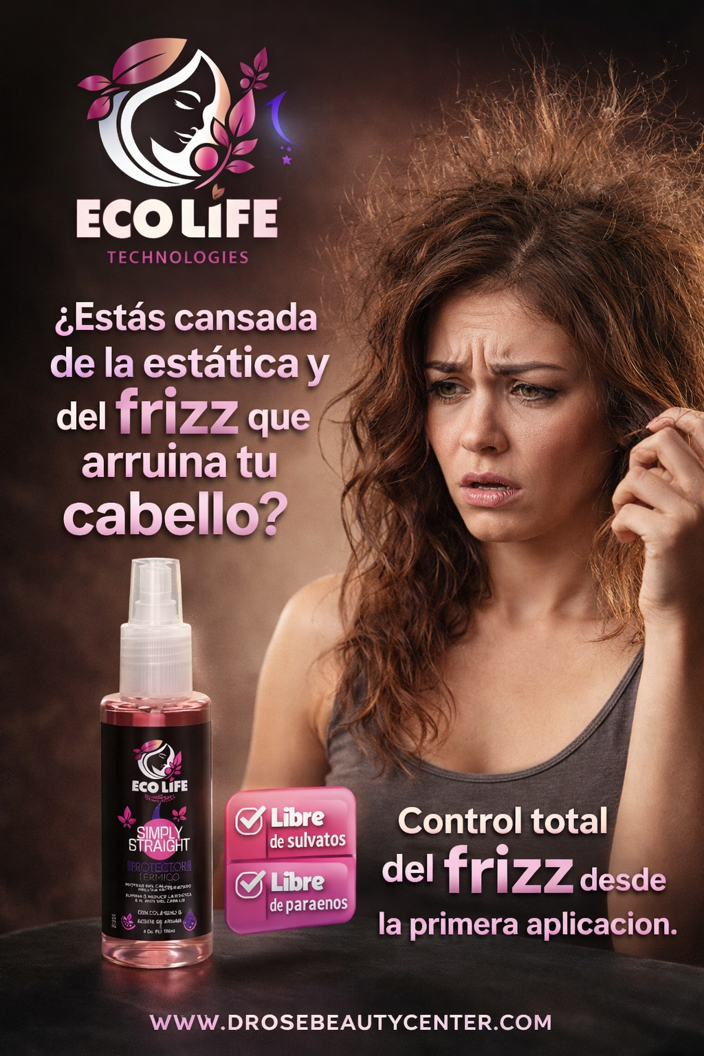 🛡️ ECOLIFE TECHNOLOGIES Simply Straight Protector Térmico 4oz – Anti-Frizz & Protección de Calor