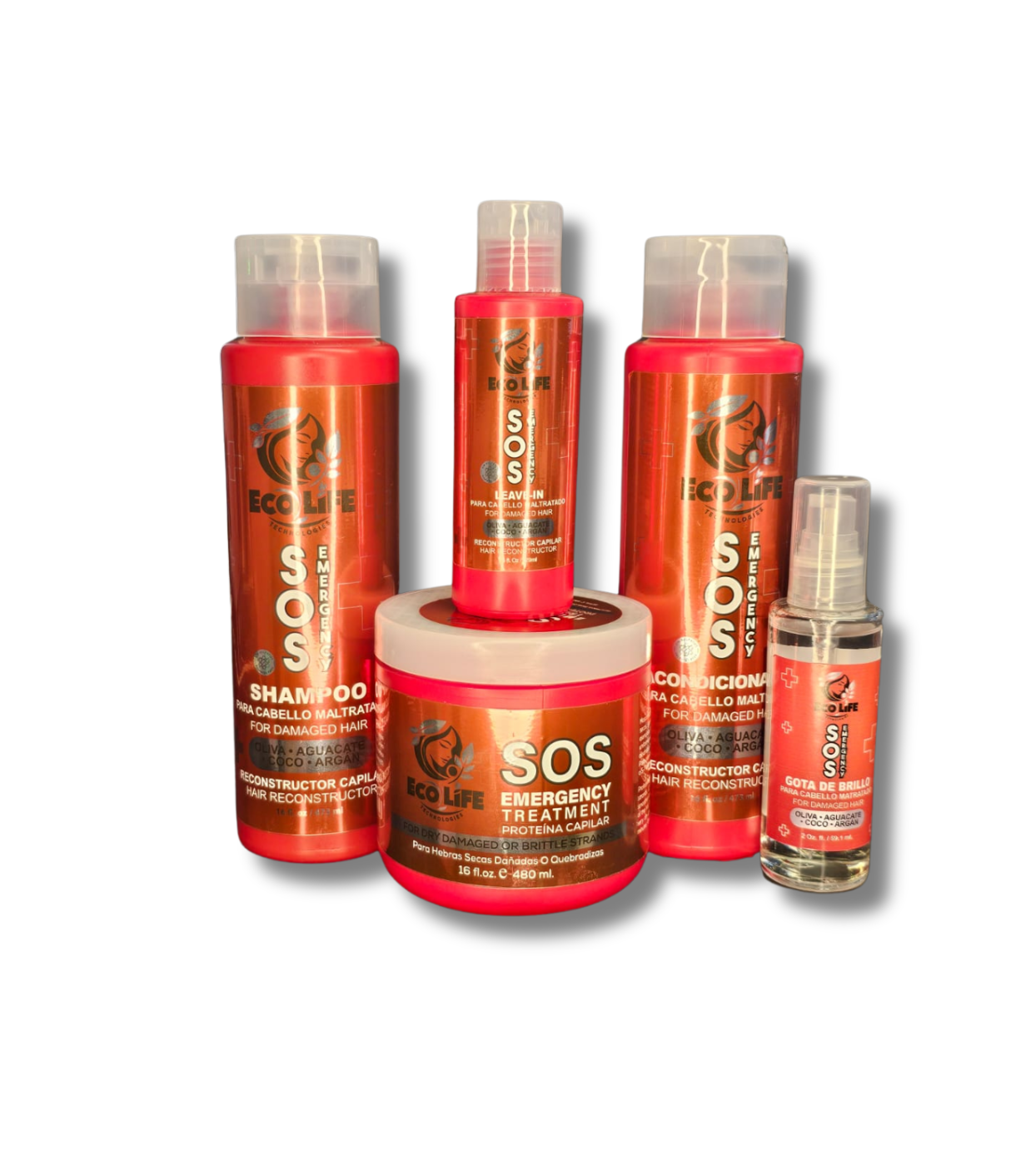 Este kit incluye shampoo 16oz, acondicionador 16oz, mascarilla 16oz, leave in 4oz y gota de brillo 2oz. Recibe gratis una ampolla de tratamiento capilar SOS EMERGENCY.