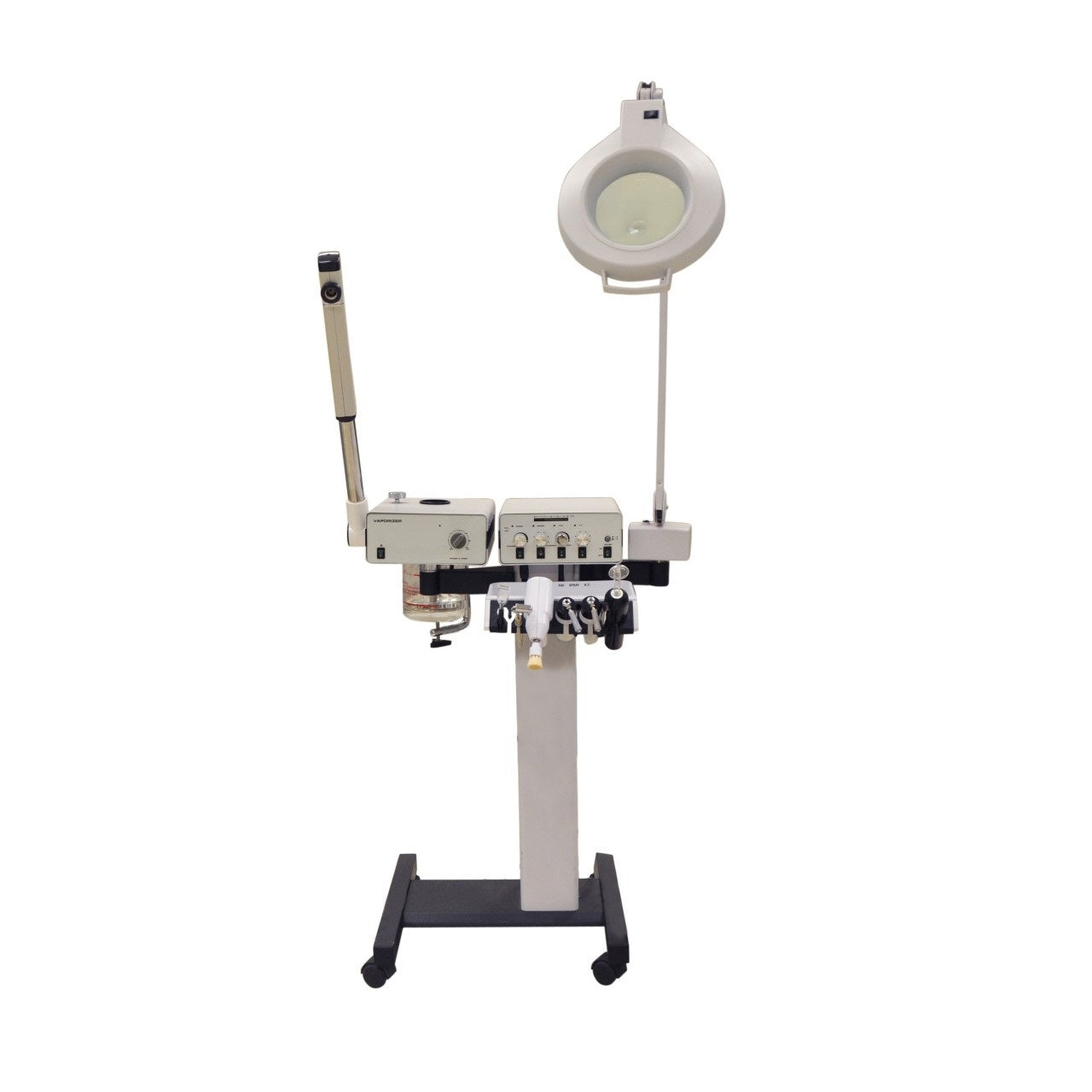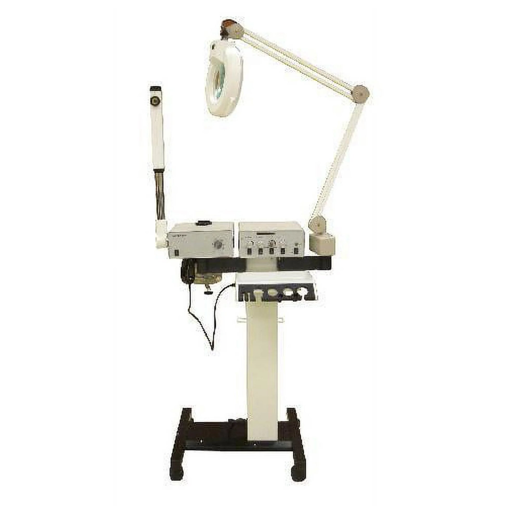 The 8 Function Facial Machine comes with everything an Esthetician will need to get started including a magnifying lamp, a vaporizer, a woods lamp, a spray machine, a vacuum machine and more. Simple on-board controls and extendable arms make using the all-in-1 spa machine easy. Most controls are located on the front of the device, allowing the operator to quickly switch between functions.