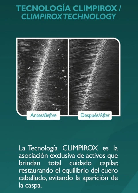KAREOL ANTICASPA, con su exclusiva tecnología CLIMPIROX, combate el problema de la caspa de manera integral. Actúa restaurando el equilibrio natural del cuero cabelludo dañado por los agentes productores de caspa y brinda un constante refuerzo con el Serum Capilar Leave- in, que actúa no solo sobre la fibra capilar, sino también sobre el cuero cabelludo, fortaleciéndolo y protegiéndolo inmediatamente, para evitar que la caspa vuelva a desarrollar.