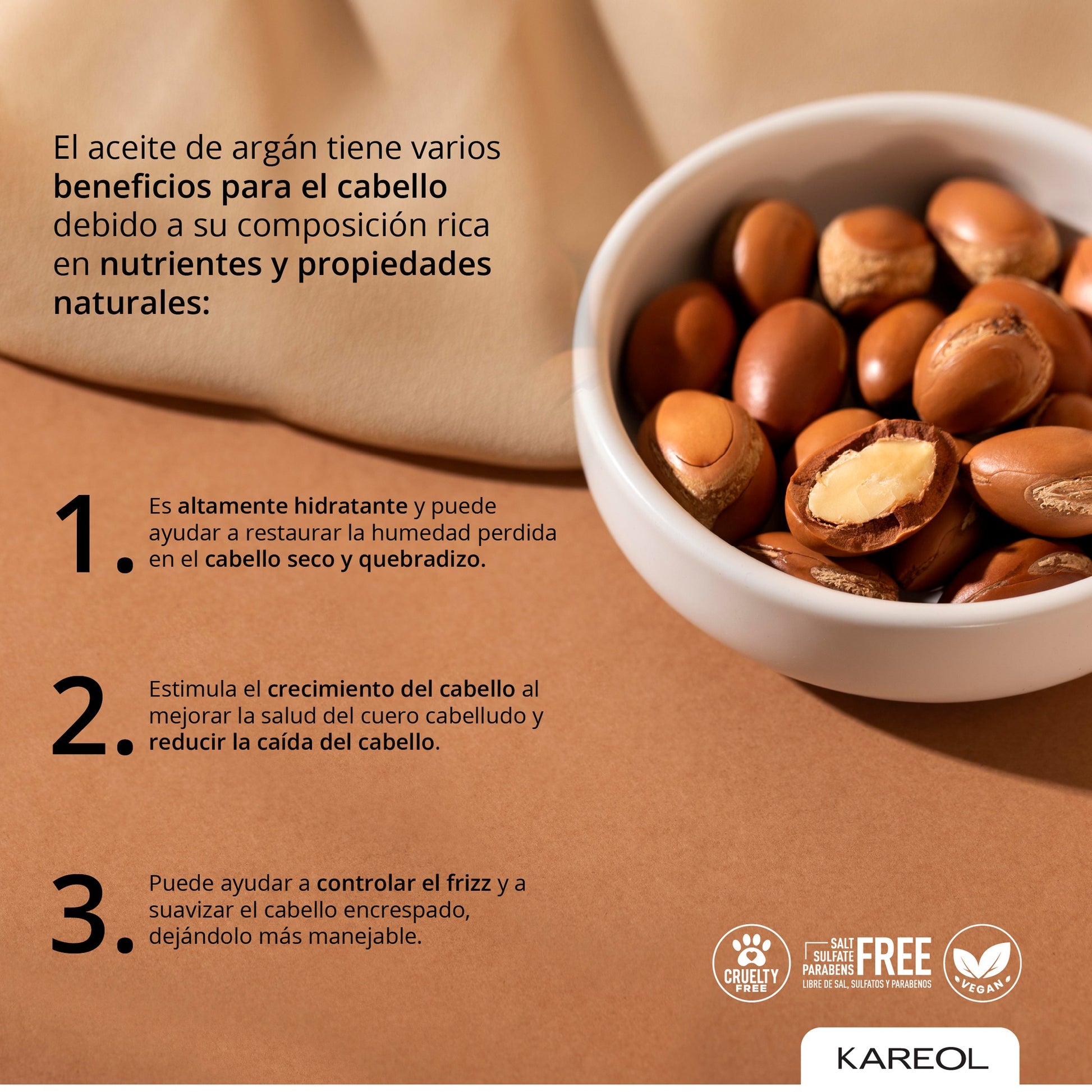 KAREOL ARGAN OIL, es la línea con el exclusivo Aceite de Argán, conocido como el “oro líquido marroquí” por sus extraordinarias propiedades y poder nutritivo sobre el cabello.