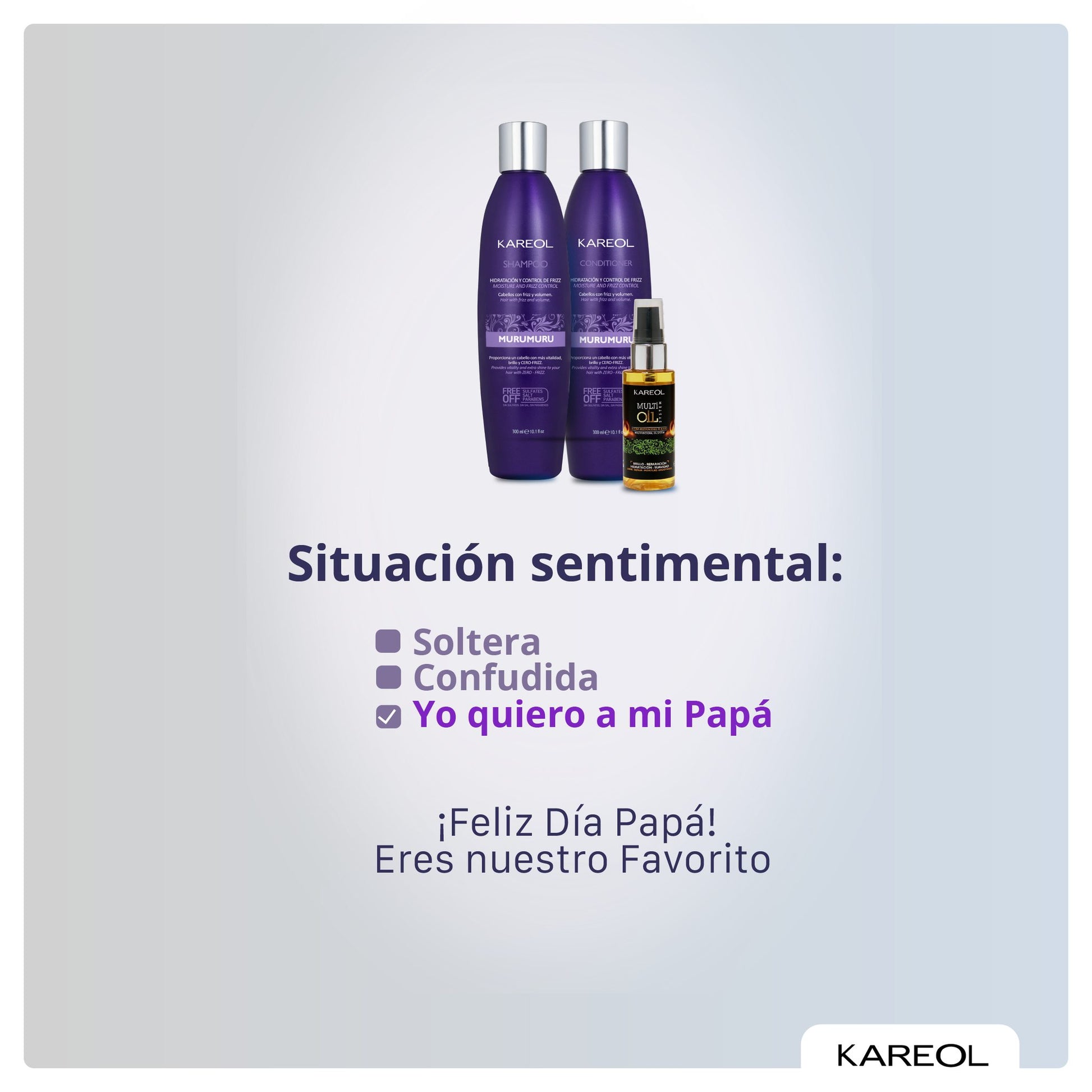 Kareol Murumuru aporta múltiples beneficios gracias a su fórmula con Ácidos Grasos del tipo Omega-9, Fosfolípidos y Lípidos naturales, que generan el proceso de “reposición lipídica” sobre el cabello, logrando recuperar, hidratar y controlar el volumen de forma inmediata, además de reducir el frizz (CERO FRIZZ) y devolverle la suavidad, brillo y naturalidad.