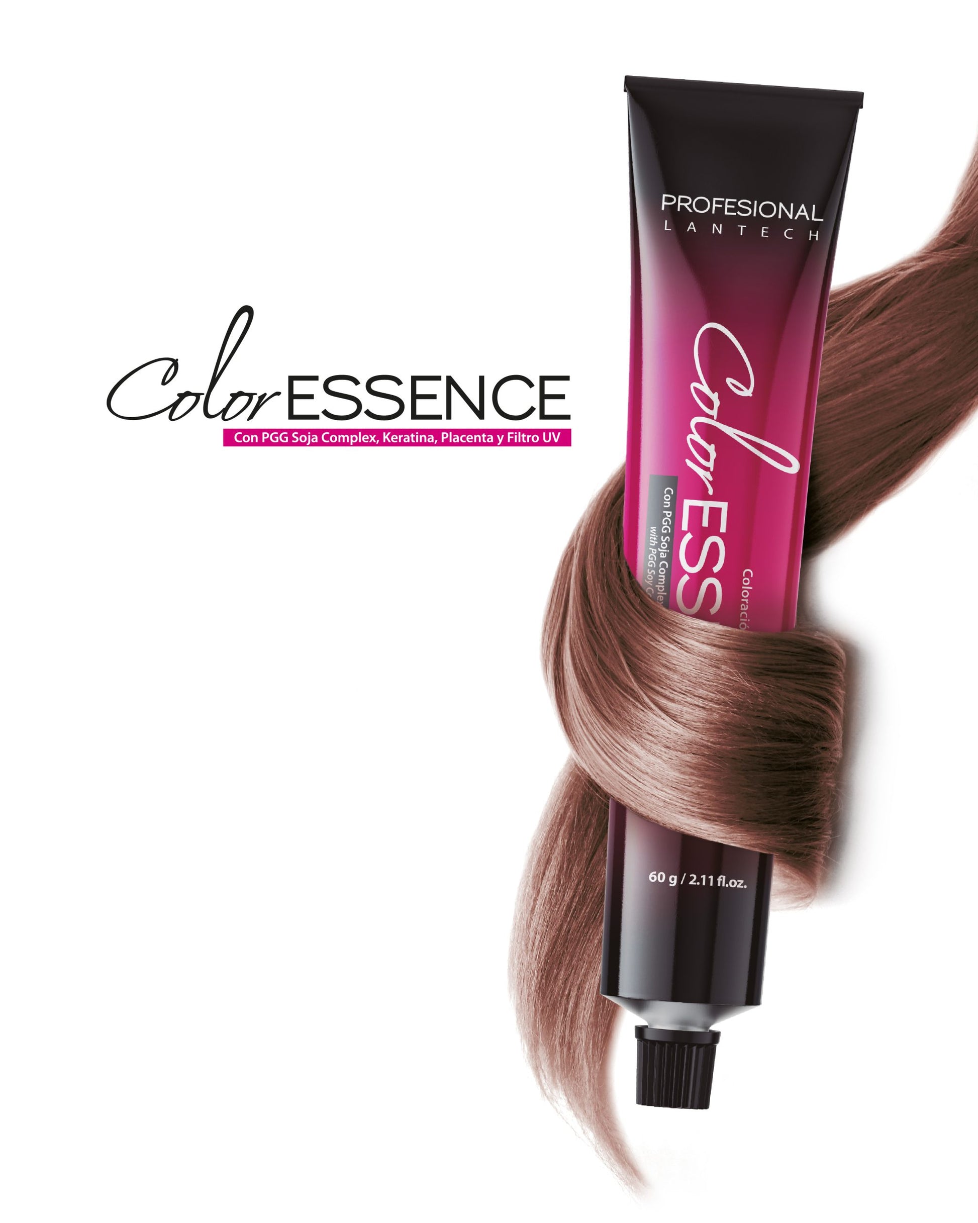 Color Essence es la línea de coloración permanente con PGG Soja Complex, Keratina, Placenta y Filtro UV que asegura la absoluta cobertura de canas y la máxima expresión del brillo natural del cabello. Su bajo nivel de amoníaco asegura el total respeto a la salud del cabello manteniendo colores elegantes y seductores por mucho más tiempo.