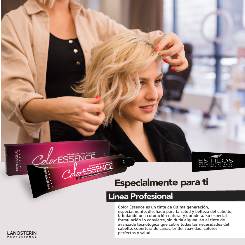 Color Essence es la línea de coloración permanente con PGG Soja Complex, Keratina, Placenta y Filtro UV que asegura la absoluta cobertura de canas y la máxima expresión del brillo natural del cabello. Su bajo nivel de amoníaco asegura el total respeto a la salud del cabello manteniendo colores elegantes y seductores por mucho más tiempo.