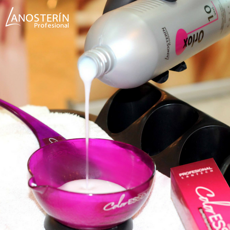 Aplicación del tinte Color Essence: En un recipiente no metálico, mezclar el contenido de 1 tubo de Color Essence de 60g con 90ml de Oxidante en crema Orlox. Proporción de la mezcla 1+1 ½. Aplicar la mezcla en medios y puntas de 20 a 25 minutos. Volver a preparar la mezcla y aplicar en las raíces de 15 a 20 minutos más.