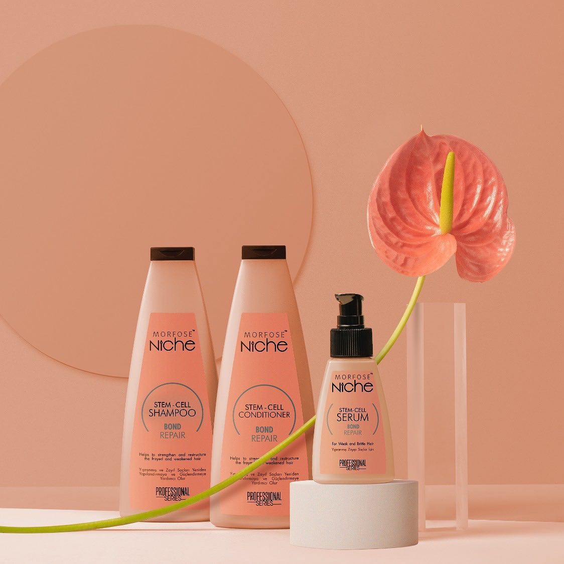 El Morfose Niche Stem Cell Bond Repair Conditioner está formulado con tecnología de células madre, diseñada para reparar, fortalecer y reestructurar el cabello dañado y debilitado desde la raíz hasta las puntas. Sus moléculas de fibra refuerzan los enlaces de queratina, logrando un cabello más saludable, manejable y lleno de vitalidad.