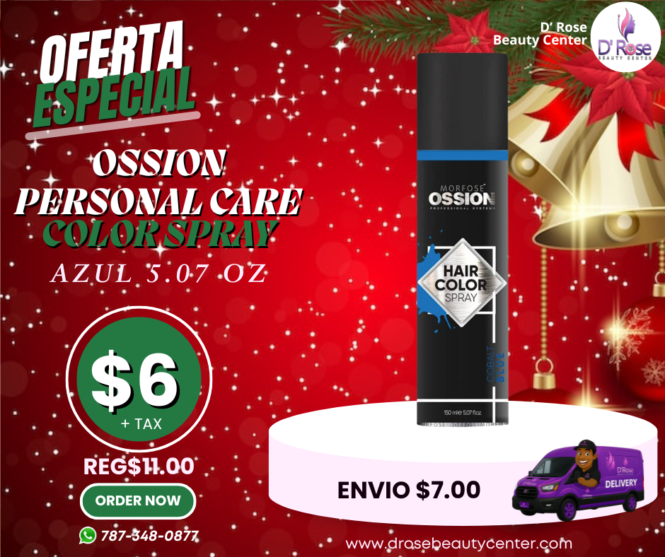 Ossion ha desarrollado un spray colorante instantáneo que te permite lograr el color AZUL (Cobalt Blue) que deseas de forma rápida y práctica. ¡Obtén un color intenso en segundos!